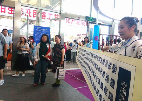 6月17日,哈洽會文化產(chǎn)業(yè)展廳綏化展區(qū),海倫的巨幅剪紙作品《百家姓》一亮相,就受到參展各界人士追捧,紛紛討價并與其合影留念,場面熱烈。記者徐文革攝