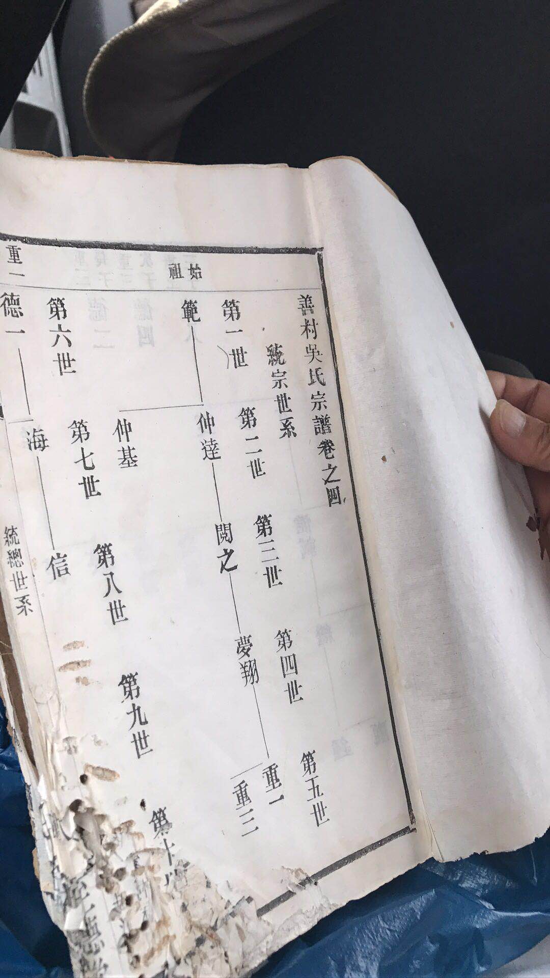 無錫宗親修譜再次進入江陰尋親,在吳末祥宗親的幫助下無錫吳氏修譜一路尋找到江陰璜塘謝家灣吳姓家人處,江陰宗親感受到了家人的到來,熱情而激動。愉快的拿出珍藏多年的世族貴寶,并鄭重把世族貴寶交到修譜專家手中。