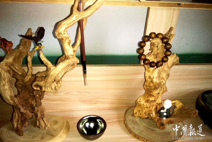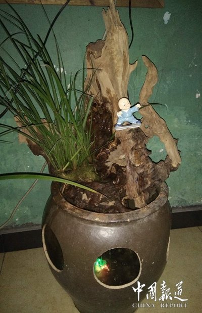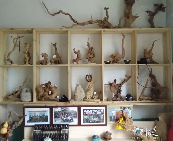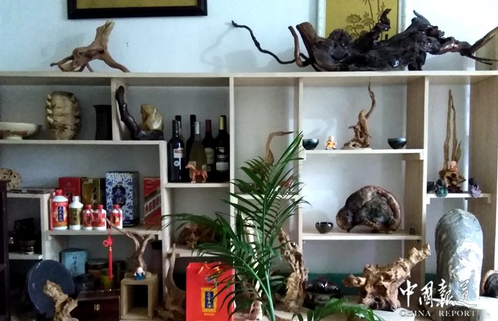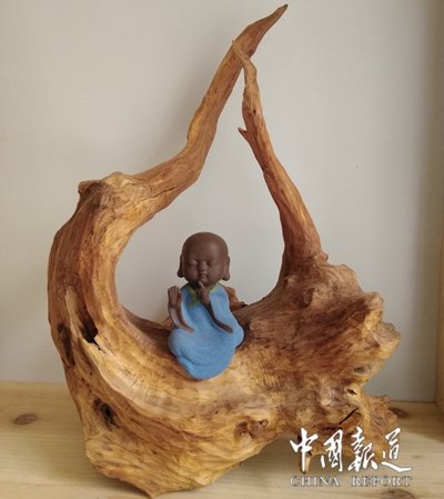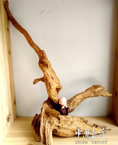 吳府的主人吳漢帝告訴記者,除了種茶和吳氏商會(huì)的事,根雕是他的最愛之一,吳漢帝說,根雕是中國傳統(tǒng)雕刻藝術(shù)之一,是以樹根(包括樹身、樹瘤、竹根等)的自生形態(tài)及畸變形態(tài)為藝術(shù)創(chuàng)作對(duì)象,通過構(gòu)思立意、藝術(shù)加工及工藝處理,創(chuàng)作出人物、動(dòng)物、器物等藝術(shù)形象作品。