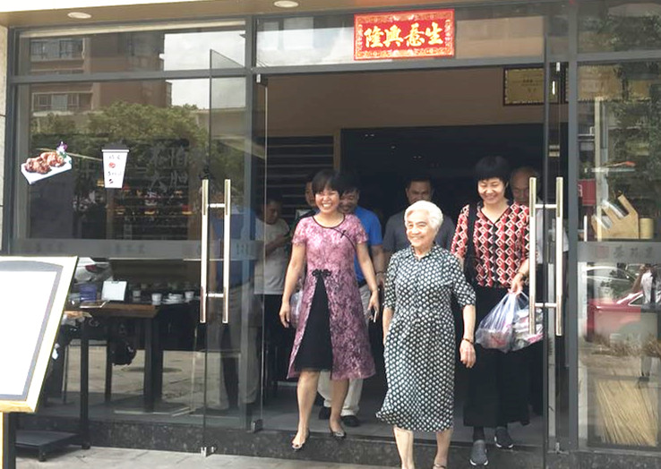 餐后,吳桂賢宗姐愉快地和蓉苑里傳家菜連鎖店的領(lǐng)導(dǎo)層合影留念。