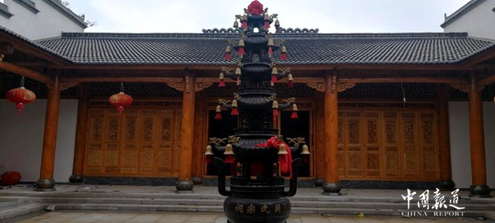 已涂刷完清漆的宗祠門梁柱、裝修好的兩邊回廊、中殿及院落、后殿大廳。粉墻黛瓦的微式建筑風(fēng)格,建筑面積近千平米。雖說是三進(jìn),可那莊嚴(yán)、精致仍不失為一大特色,合抱粗的松木柱梁,外門兩旁徴派特色的磚雕技術(shù)與根雕之鄉(xiāng)的工藝完美結(jié)合,均來自永華宗長的高超技術(shù)監(jiān)理和指導(dǎo)。二殿院落中間,擺放著鑄有蕪湖鑄造字樣的,吳家女婿魏氏捐贈的兩米多高的香爐,襯托著中殿更加氣勢恢宏。兩邊回廊布局相當(dāng)合理、玲瓏小巧,給人以耳目一新之感。拜訪組一行,邊走邊看,不時駐足詢問。陪同的宗親對設(shè)計投標(biāo)、材料采購、施工、質(zhì)量、進(jìn)度、安全、資金籌措等一一作了介紹。一千平米的建筑面積,足足花了40多分鐘。