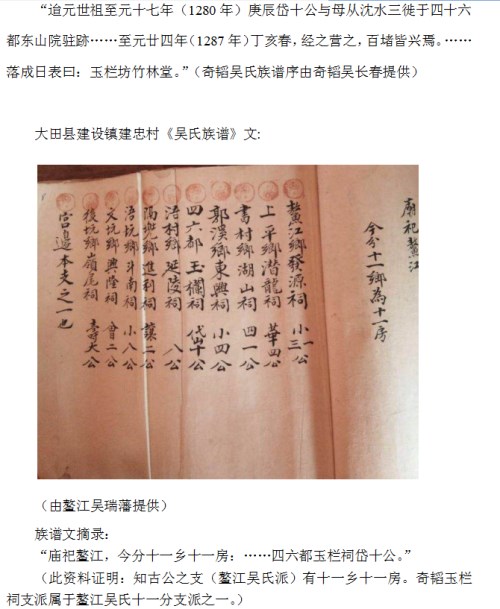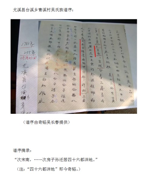 1.品二公于1042年遷居大田縣葛竹洋,岱十公于1280年遷居大田縣奇韜。品二公至岱十公共有10代。1042—1042 = 238, 238÷10 =23.8 代差23.8歲(符合生育規(guī)律)