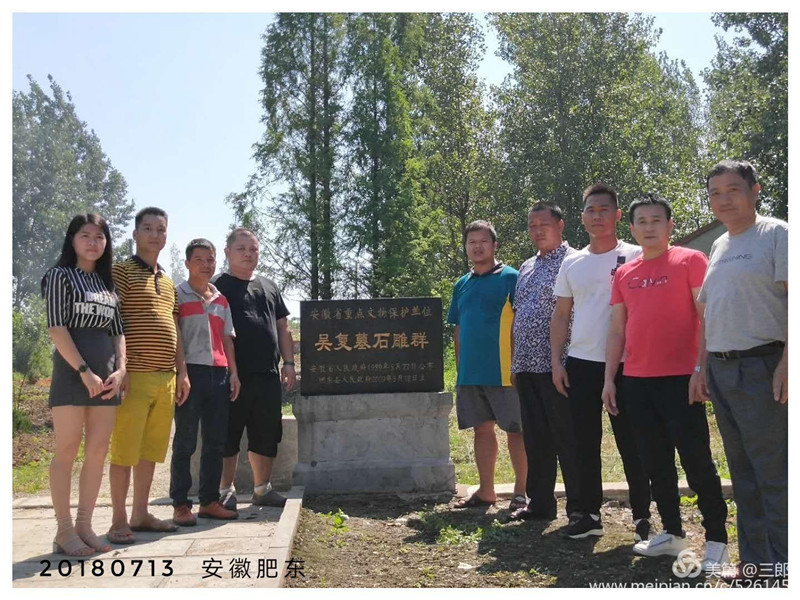 2018年7月12日,廣西藤縣吳志積公后裔吳仕杰、吳壽聰、吳大鵬、吳坦朗、吳潮湖、吳家義、吳華平在皖湘黔吳氏復公系宗親理事會副理事長吳忠禮陪同下,從廣州來安徽肥東縣八斗鎮(zhèn)尋根問祖,祭拜先祖吳復公。湖北荊州宗親吳兵聞訊也特地從荊州趕來陪同。