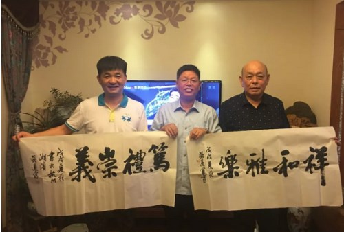 2018年7月18日溫吳會代表與浙吳會秘書長吳紹蒙,前往浙江杭州浙吳會會長吳道富家中拜訪,向道富會長匯報溫吳會籌備以來各方面工作,請教未來溫吳會的發(fā)展方向,成立溫吳會應(yīng)該注意事項,道富會長一一指導(dǎo)特別強(qiáng)調(diào),傳承泰伯包容,謙讓的精神,為浙江吳氏團(tuán)結(jié),和諧作貢獻(xiàn)。道富會長特意為溫吳會和幾位宗親贈送墨寶留念!