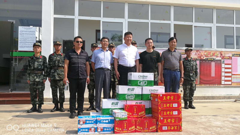為慶祝中國(guó)人民解放軍建軍91周年,2018•8•1上午,安徽至德傳統(tǒng)文化研究院在理事長(zhǎng)、院長(zhǎng)吳伍兵的帶領(lǐng)下,頂著烈日,冒著40度的高溫懷著對(duì)部隊(duì)、對(duì)子弟兵的無限崇敬心情,從合肥來到武警安慶支隊(duì)執(zhí)勤3大隊(duì)宿松中隊(duì),走訪并慰問了在那里擔(dān)負(fù)守衛(wèi)、警戒及訓(xùn)練任務(wù)的武警官兵。炎炎酷暑給他們送去了慰問品,帶去了絲絲甘甜和清涼。