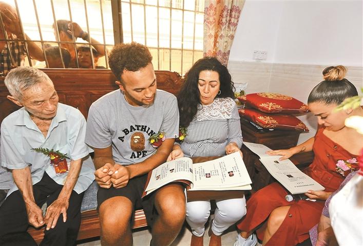 當(dāng)凱爾·安德森走下中巴,立馬就感受到了地面的溫度以及親人們的熱情。初次聽到轟鳴的鞭炮聲,身為美國人的凱爾·安德森嚇了一大跳,當(dāng)見到與他血脈相通的30多位族親后,他立刻被熱情的親人們包圍了,侄子侄女們給凱爾·安德森戴上了胸花,然后引導(dǎo)凱爾·安德森一行來到70歲的李天平的庭院。