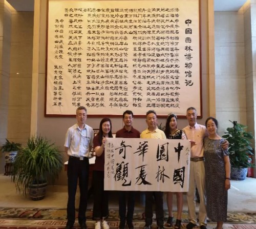上周,止園園主人吳亮的后人吳歡先生來(lái)到中國(guó)園林博物館,園博館副館長(zhǎng)黃亦工與其走進(jìn)中國(guó)古代園林廳,一睹止園學(xué)術(shù)研究復(fù)原成果——止園模型的風(fēng)采。吳歡先生現(xiàn)場(chǎng)題字“止園”贈(zèng)送于園博館。