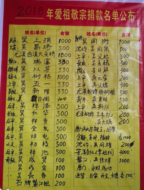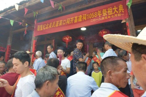 (吳同一/文、吳日宙/圖來稿)2018年8月11日(農(nóng)歷七月初一日)熱烈祝賀隆重紀(jì)念吳氏蓬萊口祠開基建祠1058年祭祖大典取得圓滿成功!廈門吳氏蓬萊祠理事會(huì)誠(chéng)邀廈門吳氏宗親會(huì)的宗親一起分享祭祀的習(xí)俗與喜悅!在國(guó)榮會(huì)長(zhǎng)的帶領(lǐng)下,宗親們的熱情高漲讓我敬佩不已!不顧周末休息旅途勞頓;在晨曦初露中奔波在蜿蜒曲折的山路上;午時(shí)終于迎來了廈門吳氏的弟兄們,冒著烈日當(dāng)頭齊聚在蓬萊口祠的祠堂內(nèi),由安溪金谷益祥宗長(zhǎng)主持司儀團(tuán)隊(duì)行禮跪拜、上祭祀品、點(diǎn)香鳴炮感謝先祖的恩賜;祠堂雖小,談笑風(fēng)生、卻熱鬧非凡;席間汗流浹背濕透了衣衫,簡(jiǎn)簡(jiǎn)單單地用完午膳,又急急忙忙地打道回府,來回折騰甚是勞累,我們表示由衷地感謝!兄弟姐妹情誼深長(zhǎng),道不盡的祝福在心間,此情此景著實(shí)讓我們感到欽佩啊!當(dāng)?shù)氐淖谟H無不感到親切無比,有生以來見到最振心的祭祀儀式的慶典活動(dòng)!