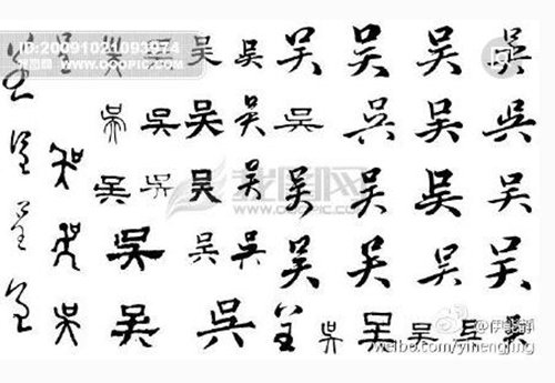 吳,繁體漢字為“吳”,上古音讀“ga”,現(xiàn)在漢語(yǔ)讀作“wu”。先秦以前“吳”和“虞”兩字是相通的。《說(shuō)文解字》上曰:“吳,大言也。從矢,口”。雖然作為姓氏的“吳”字,在今天看不出絲毫特殊的意義,但是在上古時(shí)代,“吳”字本身包含的意義卻令人為之嘆絕驚奇。從字到姓,跨過(guò)了浩瀚的滄海與桑田,體現(xiàn)了吳姓悠久的歷史文化。見(jiàn)證了那段不朽的歷史,記錄著在那遠(yuǎn)古蒙昧、野蠻時(shí)代的吳氏族人,一直在艱難的自然環(huán)境和社會(huì)競(jìng)爭(zhēng)中頑強(qiáng)地生存著。他們的足跡,時(shí)時(shí)在這一段幽暗的歷史長(zhǎng)河中閃現(xiàn)出短暫的光芒。