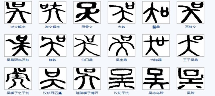 “吳”是一個(gè)會(huì)意字,由“矢”和“口”兩個(gè)構(gòu)件組合而成。大約到東漢以后漢字規(guī)范化,把“矢”部開(kāi)始改成“天”。