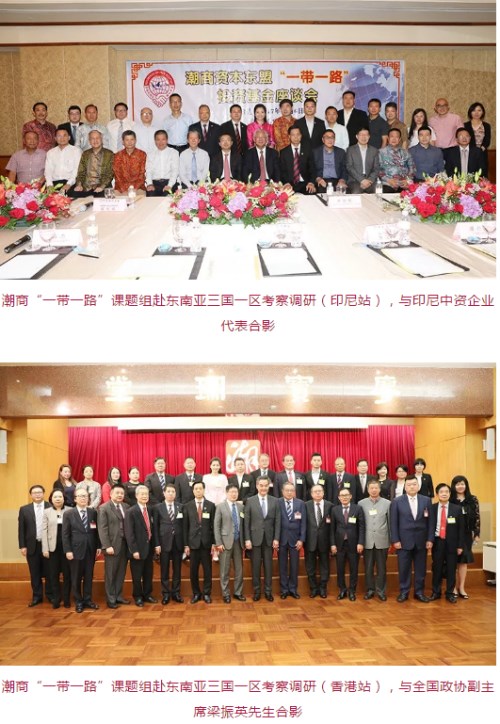 潮商“一帶一路”課題組赴東南亞三國(guó)一區(qū)考察調(diào)研,與泰國(guó)正大集團(tuán)資深董事長(zhǎng)謝國(guó)民、全國(guó)政協(xié)副主席梁振英及當(dāng)?shù)爻睂偕鐖F(tuán)、中資機(jī)構(gòu)和我國(guó)駐當(dāng)?shù)卮笫桂^負(fù)責(zé)人等就潮商參與一帶一路建設(shè)做了深入交流;先后在云南、重慶、廣西等大會(huì)上,探討全球潮商融入東盟,參與“一帶一路”建設(shè)的機(jī)遇與前景;