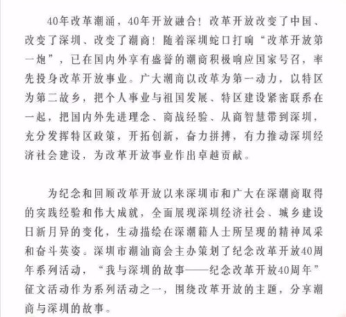 “1995年深圳潮人海外經(jīng)濟(jì)促進(jìn)會(huì)成立,那是深圳最早的潮屬社團(tuán)。當(dāng)時(shí),我已在深圳發(fā)展近10年了。在時(shí)任會(huì)長(zhǎng)黃國(guó)祥老領(lǐng)導(dǎo)的推薦下,我十分榮幸地加入了深圳潮人海外經(jīng)濟(jì)促進(jìn)會(huì),從此與深圳潮商圈結(jié)下了情誼。