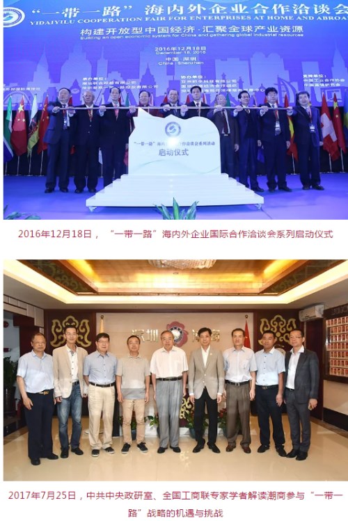 2016年,商會(huì)先后拜訪泰國(guó)、印尼、馬來(lái)西亞、新加坡等沿線國(guó)家的7家海外社團(tuán),加強(qiáng)“一帶一路”友好交流合作,共促發(fā)展;主辦了“一帶一路”海內(nèi)外企業(yè)合作洽談會(huì)深圳分論壇,與20多個(gè)國(guó)家和地區(qū)的40多家潮屬社團(tuán)和潮汕四市有關(guān)部門簽訂了國(guó)際潮商“一帶一路”戰(zhàn)略合作聯(lián)盟協(xié)議;啟動(dòng)中國(guó)潮商一帶一路集團(tuán)有限公司對(duì)接“一帶一路”經(jīng)濟(jì)實(shí)體平臺(tái);與北京大成研究院聯(lián)合發(fā)起潮商“一帶一路”課題研究,探索在國(guó)家政策支持下設(shè)立潮商?hào)|盟“一帶一路”投資基金;