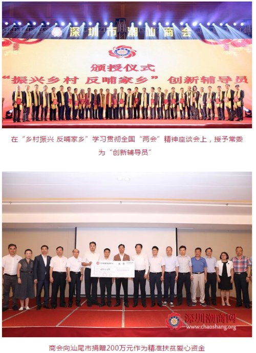 今年全國(guó)“兩會(huì)”剛剛閉幕,有著極強(qiáng)政治敏銳性的他,決定舉辦“鄉(xiāng)村振興 反哺家鄉(xiāng)”學(xué)習(xí)貫徹全國(guó)“兩會(huì)”精神座談會(huì),深入貫徹落實(shí)黨的十九大、今年中央一號(hào)文件和省委、省政府關(guān)于實(shí)施鄉(xiāng)村振興戰(zhàn)略精神,并授予21位常委為“創(chuàng)新輔導(dǎo)員”,讓他們將人生觀、價(jià)值觀、經(jīng)營(yíng)理念、創(chuàng)業(yè)故事等精神財(cái)富通過(guò)思想傳導(dǎo),反哺家鄉(xiāng),助力家鄉(xiāng)發(fā)展。創(chuàng)新輔導(dǎo)員已開展了首站汕尾精準(zhǔn)扶貧公益慈善活動(dòng),并向汕尾市捐贈(zèng)了200萬(wàn)元作為精準(zhǔn)扶貧愛心資金。