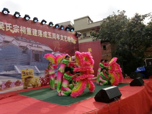 千官鎮(zhèn)云霄桄榔坪吳氏宗祠宗祠建筑面積近五佰多平方,有籃球場舞臺,祠堂面前有魚塘近二畝面積。活動內容早上八點集體拜老祖宗,九點捐款活動和禮品發(fā)方,十一點半飲酒同慶,中年二點歌舞表演,晚上八點繼續(xù)文藝晚會。