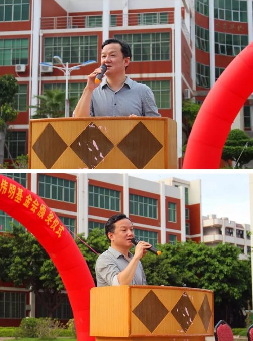 最后,吳明生先生發(fā)表了熱情洋溢的講話。作為磁灶中學的校友,他談笑風生,深情地回顧了自己在母校學習與生活的點滴往事,談及學習對于自身發(fā)展與國家社會進步的重要性,并以自己的親身經歷勉勵同學們“學習、學習、再學習,努力、努力、再努力”,今后考上理想的大學,將來回報社會。