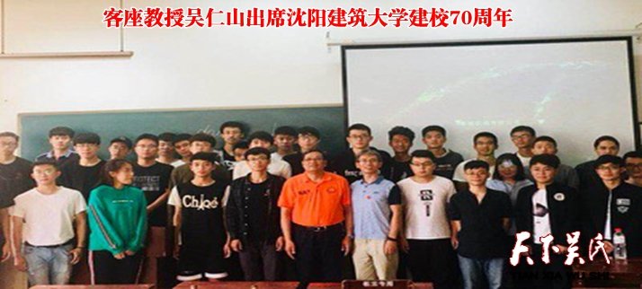 天下吳氏訊(特約采編 吳建東)日前(9月21),在沈陽建筑大學(xué)建校70周年校慶來臨之際,中國高空機(jī)械與吊籃產(chǎn)業(yè)聯(lián)盟理事長、江蘇省高空機(jī)械吊籃協(xié)會會長、無錫市吳文化研究會常務(wù)會長、無錫市吳文化研究會董事會董事長、申錫機(jī)械有限公司董事長、沈陽建筑大學(xué)客座教授吳仁山受邀赴沈陽建筑大學(xué)。上午拜訪沈陽建筑大學(xué)原黨委書記吳玉厚教授,下午赴沈陽建筑大學(xué)知識講座。