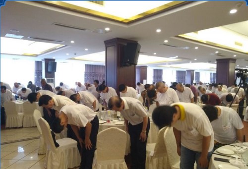 全體宗親都身著統(tǒng)一的吳氏圖徽的文化衫入場