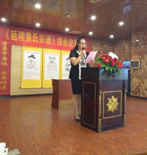 在這秋高氣爽豐收的季節(jié),我和江陰市譜牒文化研究會及澄東分會的同仁,十分高興地來到美麗富饒、充滿活力的江陰古鎮(zhèn)顧山,參加讓徳堂《延陵吳氏宗譜》的宏發(fā)儀式。這是讓德堂延陵吳氏宗親政治生活中的一件大事,一件喜事,為此,我謹(jǐn)代表江陰市譜牒文化研究會向讓德堂延陵吳氏各位宗親,向吳惠江主修、吳世平主任、周禮沛主編和為續(xù)譜作出貢獻(xiàn)的宗親們表示熱烈的祝賀并致以崇高的敬意! 籍此機(jī)會,我向各位宗親提二點(diǎn)希望。