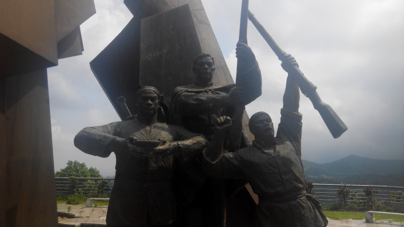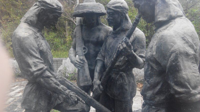 實際上,在“激浪滔天”的群雕右邊,也有一條上山的路,只是從“激浪滔天”的群雕旁邊看不到這條路里有其它雕塑,所以沒有人先從這條路上山。如果從這條路上山,所見到的雕塑,都是按起義的時間順序建立的。而從“激浪滔天”的群雕左邊上去,最先看到的是起義勝利后或結(jié)束時的事件??梢姡嘘P(guān)部門適合在“激浪滔天”群雕右邊的上山入口處安裝一個指示牌。