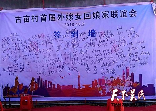 古畝村是水庫移民村,在黨和政府的大力支持幫扶下,新農(nóng)村建設(shè)面貌煥然一新,一派欣欣向榮的新景象,吳氏宗親發(fā)揚(yáng)泰伯精神團(tuán)結(jié)友愛,讓外嫁她鄉(xiāng)的女姑大受感動(dòng),所以特地在這舉國同慶萬民齊樂的美好日子里,舉辦這次回娘家活動(dòng)。