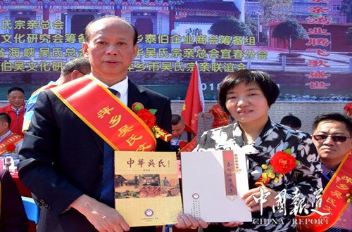 據(jù)介紹,中華中氏宗親總會是中華吳氏懇親大會的組織協(xié)調(diào)機構(gòu),該會堅持以文物為依托,以宗親為基礎(chǔ),以文化為靈魂,以經(jīng)濟為目標,始終秉承“弘德、敦親、平等、共享”的立會理念,全力打造“五大品牌載體”,即“親情中華”聯(lián)誼走親品牌、“興業(yè)中華”商貿(mào)活動品牌、“弘德中華”對外宣傳品牌、“圓夢中華”文化交流品牌、“筑夢中華”組織建設(shè)品牌。中華吳氏宗親總會愿意與所有吳氏社團攜手合作,共同促進姬吳文化的繁榮發(fā)展。讓我們繼續(xù)發(fā)揚“三讓”祖德,發(fā)揚開拓進取的精神,同心協(xié)力,為中華吳氏宗親謀福祉、作貢獻,為實現(xiàn)中國夢而努力!