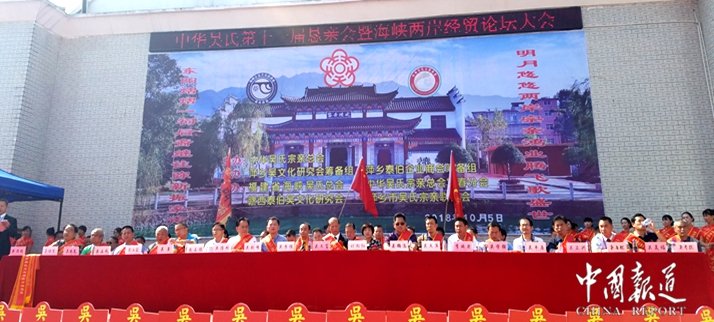中國報道訊(吳蜀豐江西萍鄉(xiāng)報道)由中華吳氏宗親總會主辦,江西萍鄉(xiāng)市吳文化研究會籌備組,泰伯企業(yè)商會籌備組承辦,福建省海峽吳氏企業(yè)總會,中華吳氏宗親總會宜春分會,贛西泰伯文化研究會,萍鄉(xiāng)市吳氏宗親聯(lián)誼會協(xié)辦的中華吳氏第十一屆懇親大會暨海峽兩岸經(jīng)貿(mào)論壇今日,(2018年10月5日)在江西萍鄉(xiāng)蘆溪縣蘆溪鎮(zhèn)東陽村吳氏宗祠成功舉辦。