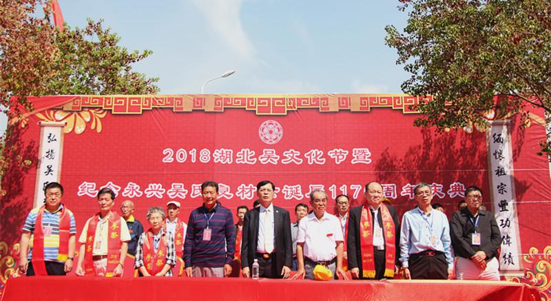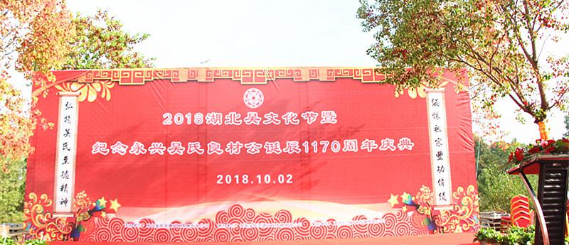 2018年10月2日上午,由湖北省吳氏至德文化發(fā)展有限公司主辦、陽新吳氏至德文化發(fā)展有限公司承辦的“2018年湖北吳文化節(jié)暨永興吳氏始祖良材公誕辰1170周年慶典”活動在陽新縣萬春公園內(nèi)隆重舉行。