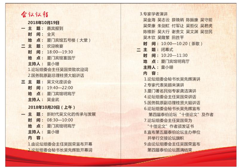 欣聞第四屆泰伯論壇10月19日在美麗的鷺島舉辦,華夏吳氏網(wǎng)特致信以最熱烈的祝賀!向辛勤籌備和精心組織本屆論壇的宗親致以崇高的敬意!并借此機(jī)會向所有為“泰伯論壇”付出心血的專家、學(xué)者致以誠摯的問候!