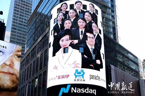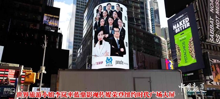 中國報道訊(吳蜀豐 報道)美國紐約時間:2018年10月24日下午14:30分,(北京時間10月25日凌晨2:50)重慶藍鼎影視傳媒董事長、世界旅游小姐亞軍李嵐為慶祝藍鼎六周年,帶領其領導的藍鼎影視管理團隊,以及其公司旗下三個品牌:美萊伊美容、藍鼎影視、Panache英國芭娜適內(nèi)衣,榮登美國紐約時代廣場納斯達克大屏,在世界的十字路口向全世界揮手。