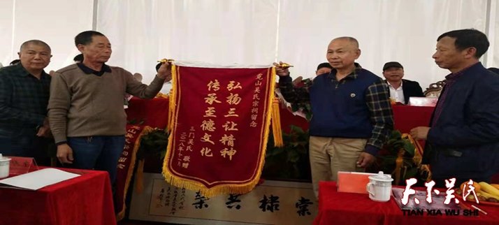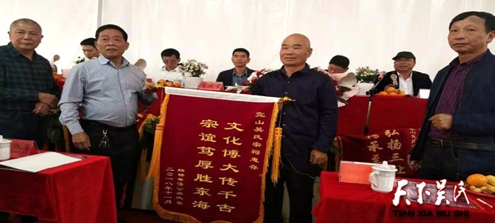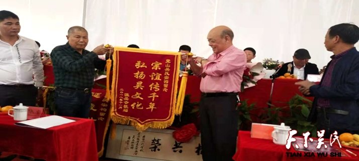吳繼初會長介紹了宗祠的發(fā)展及文化的歷史淵源,講述了偉大的歷史人物和祠堂的悠久歷史,想通過這種方式來教育下一代把這些優(yōu)良傳統(tǒng)代代傳承下去,發(fā)揚(yáng)光大。吳道富會長與吳腫照部長一起向霓山宗祠代表吳度云和吳慶文授牌,一塊金光閃閃的吳文化傳統(tǒng)教育基地的牌匾從此就要在這里生根發(fā)芽,它象征著中華傳統(tǒng)文化,時(shí)刻警醒我們怎樣弘揚(yáng)正能量,如何教育下一代沿著祖輩的文化足跡,把傳統(tǒng)文化撒向神州大地。吳金松會長就吳文化的發(fā)展歷程,作了精彩絕倫的演講,會場不時(shí)傳來雷鳴般的掌聲。