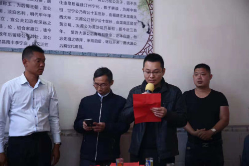 10:30時(shí),慶典活動(dòng)拉開(kāi)了序幕,慶典大會(huì)由黃沙坑吳氏大源公宗祠重修理事會(huì)副會(huì)長(zhǎng)應(yīng)福主持,理事會(huì)會(huì)長(zhǎng)林才致歡迎詞。他首先代表理事會(huì)對(duì)各位來(lái)賓的蒞臨表示熱烈歡迎和衷心感謝!接著簡(jiǎn)要介紹了在祠堂重建過(guò)程中,宗親們慷慨解囊,捐款獻(xiàn)策的典型事跡,并深切感謝了洪桂、洪友、洪林、華才、建才等宗賢;應(yīng)貴、應(yīng)龍、應(yīng)江等宗親對(duì)宗祠建設(shè)慷慨解囊,鼎力支持的典型事跡。