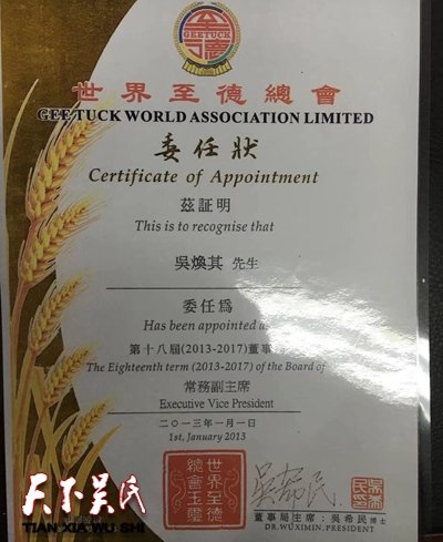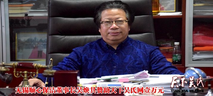 無錫順心保潔董事長吳煥其贊助天下吳氏網(wǎng)壹萬元