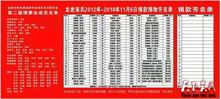 中國書協(xié)理事、福建省政協(xié)委員、龍巖市文聯(lián)主席王永昌以及龍巖本土書法家吳榮標和吳土盛宗親、劉路永和4方春生各捐義賣墨寶2幅,開紅禮品行老總吳東先和瑞捷經(jīng)貿(mào)有限公司老總吳學智贊助宴會酒水飲料;中華吳氏宗親總會吳文富主席、副主席吳學強以及吳清奎、吳坤奎、吳玉兆、吳彥、吳立章和吳行寶等宗親贊助禮品和獎品?,F(xiàn)場義賣所得8399元捐作龍巖吳氏獎助學、敬老扶貧等慈善所用。