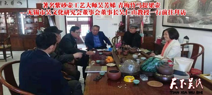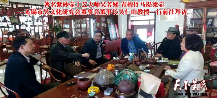 天下吳氏訊(特約撰稿吳建東) 人間珠玉安足取,豈如陽(yáng)羨溪頭一丸土。2018年11月13日,無(wú)錫市吳文化研究會(huì)董事會(huì)董事長(zhǎng)吳仁山教授、副會(huì)長(zhǎng)兼秘書長(zhǎng)陳振康教授、常務(wù)秘書長(zhǎng)戈文輝、辦公室副主任吳仁興一行前往宜興,對(duì)紫砂壺產(chǎn)品考察、調(diào)研。拜會(huì)了著名紫砂壺工藝大師吳芳娣等陶藝工藝大師們,并與大家座談。