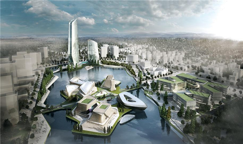 喜得開荒新景象,請(qǐng)君望,高樓林立成時(shí)尚。