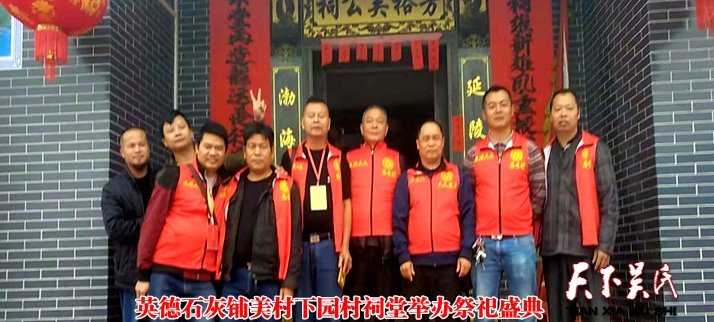 英德愛(ài)心團(tuán)受下園村的邀請(qǐng),在吳遠(yuǎn)輝隊(duì)長(zhǎng)吳開(kāi)雄秘書(shū)長(zhǎng)的帶領(lǐng)下,吳金水、吳基團(tuán)、吳桂初、吳偉華、吳文彬、吳章展、吳開(kāi)勇、吳宏慈、吳良伍、吳德倫、吳明星、吳志彬、吳元超、吳偉良、吳茂志、吳祖寬、吳基養(yǎng)宗親等前往祝賀和聯(lián)誼!