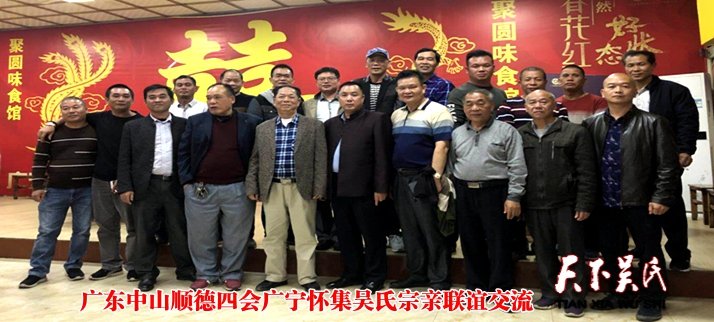 天下吳氏網(wǎng)訊(特約采編 吳昌祿)11月24日,廣東中山、順德、四會(huì)、廣寧、懷集五地20多位吳氏宗親齊聚廣東懷集聚圓味食館交流聯(lián)誼。
