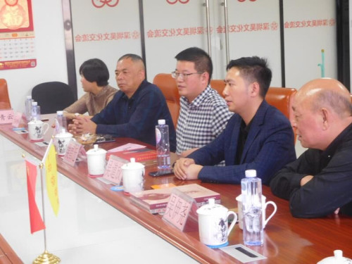 2018年12月1日上午,浙江吳文化研究會(huì)執(zhí)行會(huì)長(zhǎng)吳道放宗長(zhǎng)、樂(lè)清吳文化研究會(huì)會(huì)長(zhǎng)吳伊堯宗長(zhǎng)、溫州市平陽(yáng)縣騰蛟鎮(zhèn)金田村大文院吳氏宗祠宗親代表吳昌近宗長(zhǎng)、臺(tái)州玉環(huán)吳氏宗親代表吳龍宗長(zhǎng),來(lái)到位于深圳龍華海韻大廈的深吳會(huì)所,訪問(wèn)深吳,第二屆世界吳氏宗親總會(huì)會(huì)長(zhǎng)吳良民宗長(zhǎng)、吳小能宗親,深吳會(huì)常務(wù)副會(huì)長(zhǎng)吳松康宗長(zhǎng)、深吳會(huì)副會(huì)長(zhǎng)吳裕軍宗長(zhǎng)、吳鳴鏑宗親熱情接待了來(lái)賓。