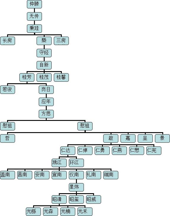 啟公六子仁達、仁倬、仁勇、仁燕,仁懋、仁憲稱為六房。①長男仁達字四聰,武庠生,貤贈武畧騎尉??ぶ荆簠侨蔬_,清代龍屯村人,啟長子,武庠生,性倜儻好義舉,每遇公益,捐資首倡。雖嫻武畧,能攻書,潛心歧黃術(shù),嘗設(shè)醫(yī)館濟人,四方活者不計數(shù)。邑令尹進士大璋高其義,贈以“橘井流春”之匾。鄉(xiāng)里排紛解難,人咸沾服稱明決焉。②次男仁倬字震谷,廩生;③三男仁勇,字健行,武庠生;④四男仁燕改名仁莊,欽賜九品,巡檢銜;⑤五男仁懋,字捷山,庠士;⑥六男仁憲字斌吉,監(jiān)生。