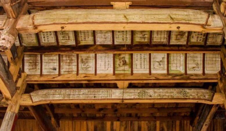 藻井、天花板上手繪的工筆書(shū)畫(huà)有120多幅,僅藻井就有29幅。