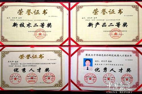 吳風平創(chuàng)辦并領導的“安康傳統(tǒng)醫(yī)學研究所”因在科研上取得重大成果,而被評審授予“三星級單位”及“中國優(yōu)秀職業(yè)經理人”稱號