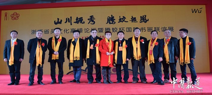 吳松金代表浙江省吳文化研究會(huì)和本次活動(dòng)組委會(huì),向海內(nèi)外各地前來(lái)參加吳文化高峰論壇和騰蛟杯國(guó)際書(shū)畫(huà)聯(lián)誼展的各位論文作者、書(shū)畫(huà)家代表和嘉賓們,致以最親切的問(wèn)候和衷心的感謝!并祝論壇和書(shū)畫(huà)展取得圓滿成功!吳松金說(shuō),山川毓秀,騰蛟起鳳,浙江吳文化高峰論壇與騰蛟杯國(guó)際書(shū)畫(huà)聯(lián)誼展分階段在杭州和騰蛟舉辦,幸負(fù)責(zé)組織了此次盛大活動(dòng),得到了廣大書(shū)畫(huà)家、吳文化研究者和愛(ài)好者的積極響應(yīng)和大力支持,有力地保障了活動(dòng)的順利進(jìn)行。