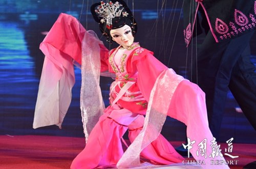 平陽木偶戲又稱傀儡戲、木頭戲,是浙江省溫州市的傳統(tǒng)民間藝術(shù)之一。其歷史悠久,早在南宋時期平陽當(dāng)?shù)孛耖g就有木偶戲活動。平陽木偶戲是以提線木偶為主,布袋木偶、杖頭木偶、人偶為輔,四位一體的綜合木偶藝術(shù)。其民間班社眾多,活躍于集鎮(zhèn)鄉(xiāng)村、廣場廟會,演繹著古今生活百態(tài),表演形式獨(dú)特,活潑多樣,唱腔兼唱高、昆、徽、亂、時、灘六種聲腔,語言兼唱官話、甌語與閩語,具有濃厚的地方色彩,也具有很高的觀賞性與研究價值。2008年被列入首批國家級非物質(zhì)文化遺產(chǎn)名錄擴(kuò)展項(xiàng)目。木偶表演《輕舞飛揚(yáng)》迎來陣陣喝彩彩。