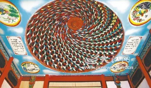雞峰橋頭吳氏宗祠,仍屬徽派建筑,粉墻皂瓦保留完整,女兒墻高達(dá)丈余,氣勢(shì)恢宏。除正門(mén)外墻有兩個(gè)小窗外,其他方向墻面沒(méi)有窗戶(hù)。東西各有一個(gè)偏門(mén),現(xiàn)在進(jìn)出是走西邊的側(cè)門(mén),大門(mén)緊鎖,管理嚴(yán)格。祠堂內(nèi)木雕、石雕、磚雕都非常精細(xì),油漆鮮亮,遍布各個(gè)墻面、廊柱和棟梁之上,保存完好。人物形象生動(dòng)活潑、眼目傳神,花草景物,搭配合理,栩栩如生。似乎毎一塊雕刻都在講述著一個(gè)祖先的故事,使我們?cè)谀畷r(shí),肅然起敬,默默沉思。尤其是大廳和戲臺(tái)中央上方旋渦狀造型的斗拱,設(shè)計(jì)新穎,造型獨(dú)特,工藝精湛,讓人稱(chēng)奇!為此,“雞峰橋頭吳氏宗祠建筑技藝”被列為“鄱陽(yáng)縣非物質(zhì)文化遺產(chǎn)保護(hù)目錄”