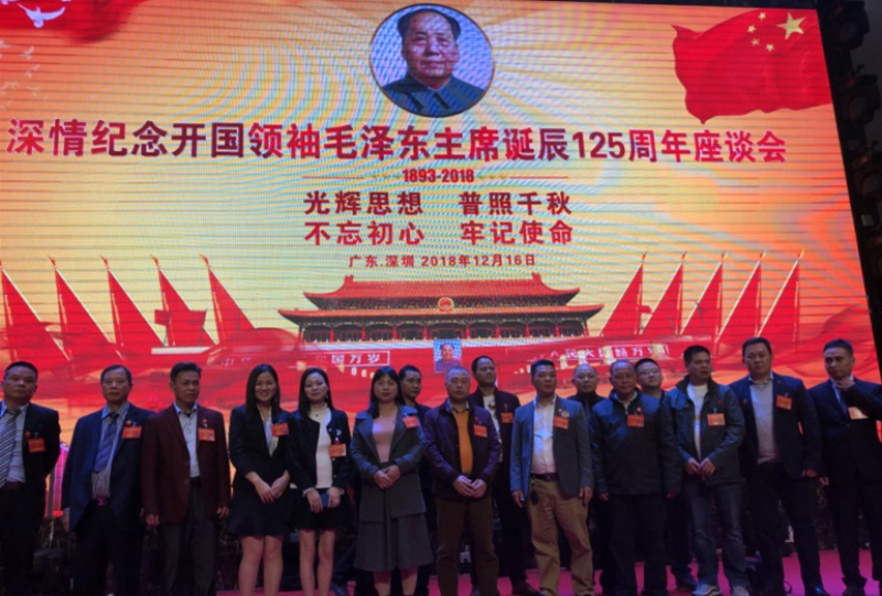 2018年3月4日,毛澤東思想永放光芒紀(jì)念會(huì)、深圳睿智長(zhǎng)征紅色文化傳播中心、攜同潮汕吳氏宗親總會(huì),在深圳舉辦紀(jì)念周總理誕辰120周年座談會(huì)之后,2018年12月16日,紀(jì)念毛澤東主席誕辰125周年座談會(huì)在深圳龍華光浩國(guó)際中心隆重舉行。座談會(huì)同樣由毛澤東思想永放光芒紀(jì)念會(huì)與深圳市睿智長(zhǎng)征紅色文化傳播中心主辦。