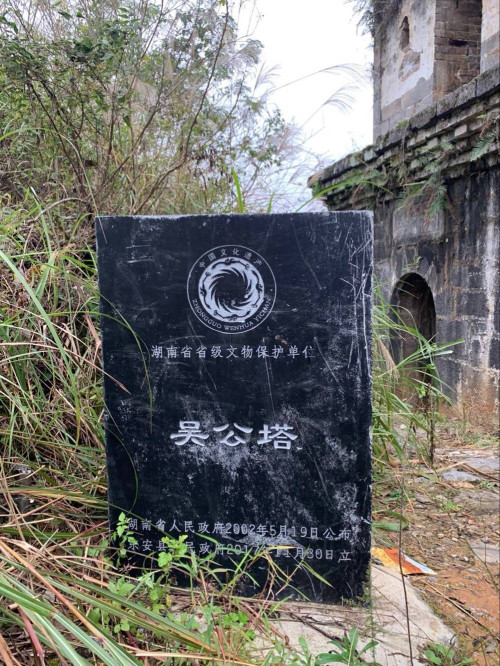紫溪市是老縣城附屬城鎮(zhèn),自宋雍熙元年(984)至民國36年(1947),縣城都在紫溪。清乾隆十四年(1749)冬,時任東安知縣吳德潤主持,在縣城邊建造這座塔。起初取名叫“回隆塔”,希望此塔能開啟一方文運,“回澗紫水文光射”,主要是起教化作用的,與佛教無關。不料塔還沒建好,這位為官清廉、善斷訟事的人民好縣長吳公就調(diào)走了,建塔工程停了下來。續(xù)任縣令荊道乾是個為政為人都很正直的厚道人,接著建這轉(zhuǎn)風水、得民心的塔。歷時三年,于乾隆十七年(1752)竣工。荊道乾并未貪天功為己有,為紀念前任縣長的功績,把這塔命名為“吳公塔”