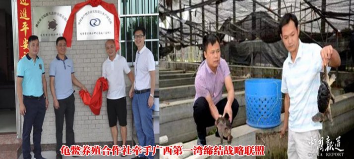 該社系肇慶市四會市東城街道沙頭村委會的“80后”吳國政取得工商管理碩士學(xué)位,在國外留學(xué)兩年后,拒絕了加拿大一家會計師事務(wù)所的高薪錄用邀請,回到了家鄉(xiāng)四會,選擇以鱷魚龜、珍珠鱉、草龜?shù)戎械投她敺N為主,石金錢、斑點池等高端龜種為輔的投資組合,以龜苗和商品龜養(yǎng)殖生產(chǎn)并進(jìn)的生產(chǎn)模式,開啟了不同尋常的龜鱉養(yǎng)殖之路。他創(chuàng)業(yè)以來建立的良好信譽為養(yǎng)殖場贏得了利益,也擴大了知名度,上百戶周邊農(nóng)民在吳國政的帶動和幫助下走上了龜鱉養(yǎng)殖致富之路。