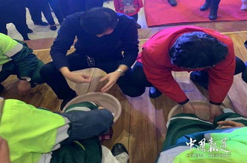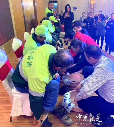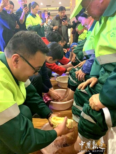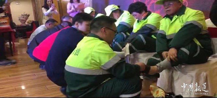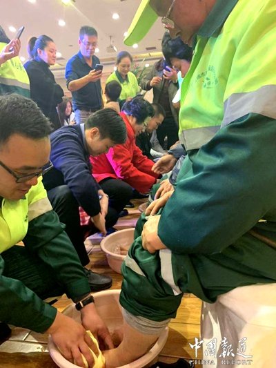 中國報道訊(吳蜀豐無錫報道)通常情況下,企業(yè)和單位到了年終就該獎勵員工了,員工們也都盼望著單位能給自己發(fā)點福利之類,期望能過上一個開心年收獲年。因為畢竟大家都辛苦一年了,總該有些回報。然而他自己本該好好過生日卻在生日這天則親自帶領(lǐng)管理團隊為環(huán)衛(wèi)工人們洗腳?這名老板很有人情味!這不是作秀,而是真真切切的事。