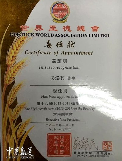 順心保潔從創(chuàng)業(yè)之初的十幾人的生活垃圾中轉(zhuǎn)站管理服務(wù)發(fā)展到如今已有員工近2800人余人,組成了頗具規(guī)模的綜合保潔服務(wù)企業(yè)。吳煥其不僅是江蘇省無錫市順心保潔有限公司董事長,其社會任職有中國誠信企業(yè)家、世界至徳總會董事局常務(wù)副主席、泰伯吳氏祖地宗親總會常務(wù)會長、《吳氏大統(tǒng)宗譜》第十六次修編委主任、中華吳氏宗親總會首屆理事會副主席、蓉湖吳氏宗親理事會會長,天下吳氏網(wǎng)高級顧問。他多次身體力行,熱心于宗親活動,為感恩祖先,惠澤后代,他與夫人曹建英一起登高一呼,并率先垂范出資六十萬人民幣,合族人之力開展了修繕《蓉湖吳氏宗祠》工程和《蓉湖宗譜續(xù)修六版》工作。以至宗祠古樸典雅,美輪美煥,蓉湖吳氏宗祠成為無錫市文物保護單位;積極參加全國各地吳氏宗親活動,主動捐款10多萬元,不定期前往敬老院和聾啞學(xué)校捐款捐物等他敬老助殘,熱心公益事業(yè),是當之無愧的尊祖愛宗之典范。據(jù)不完全統(tǒng)計,吳煥其共捐款捐物近150余萬元。